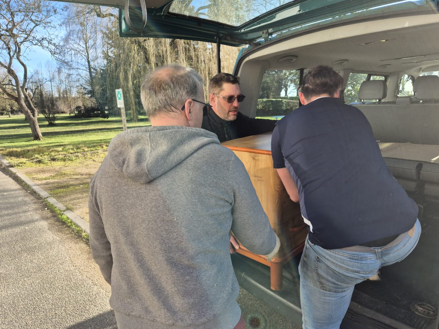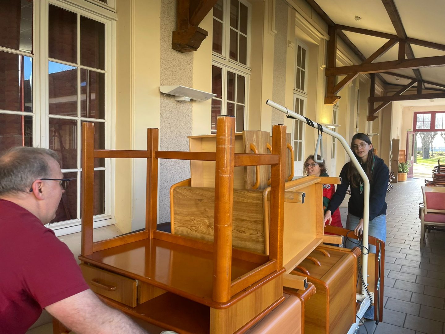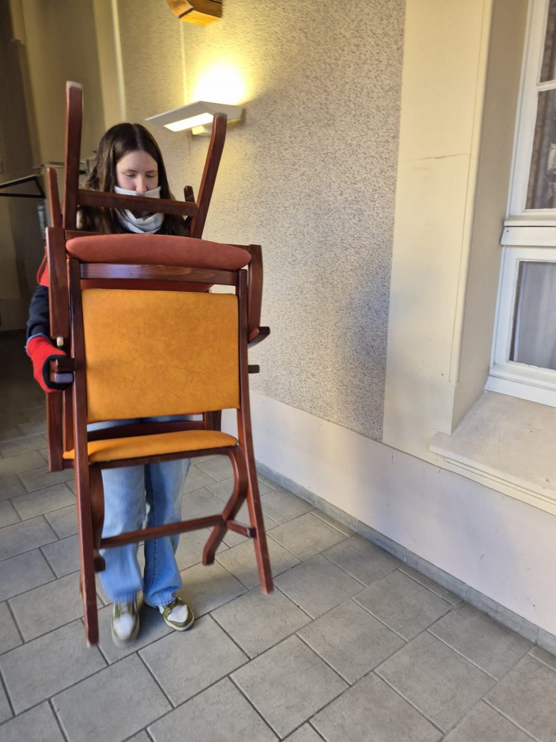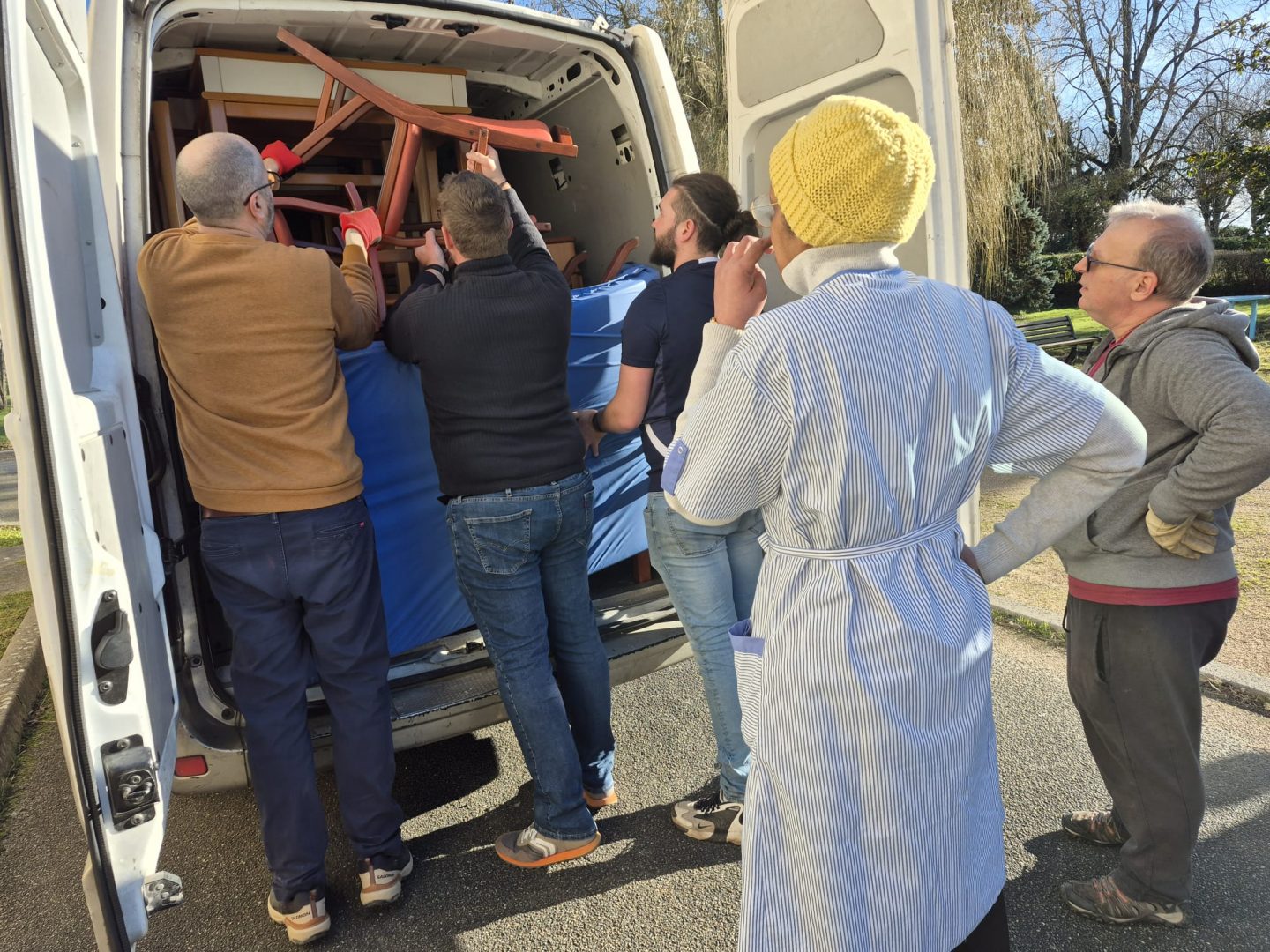 Au delà des efforts physiques et des réflexions intenses pour arriver à caser les meubles sur des chariots ou dans des camionnettes, nous n’avons pas perdu notre bonne humeur et avons improvisé parfois des transports