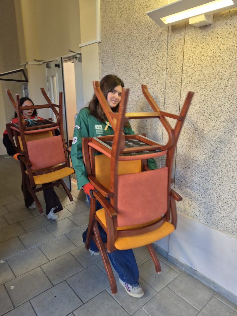 Plusieurs compas et caravelles, une guide, ainsi que plusieurs équipiers, impeesas et parents ont oeuvré aux côté des soeurs et de scouts venus du groupe de Rambouillet.